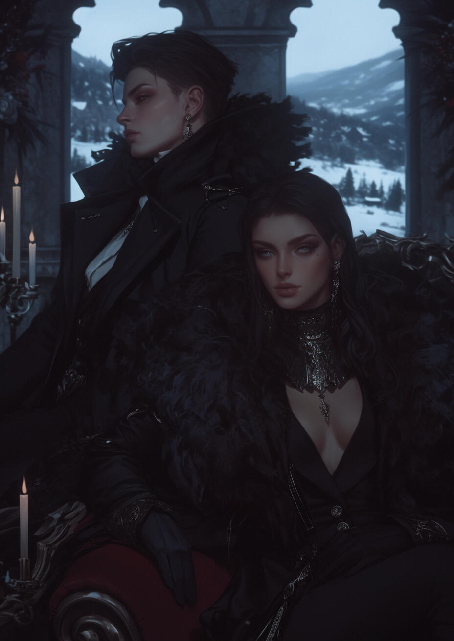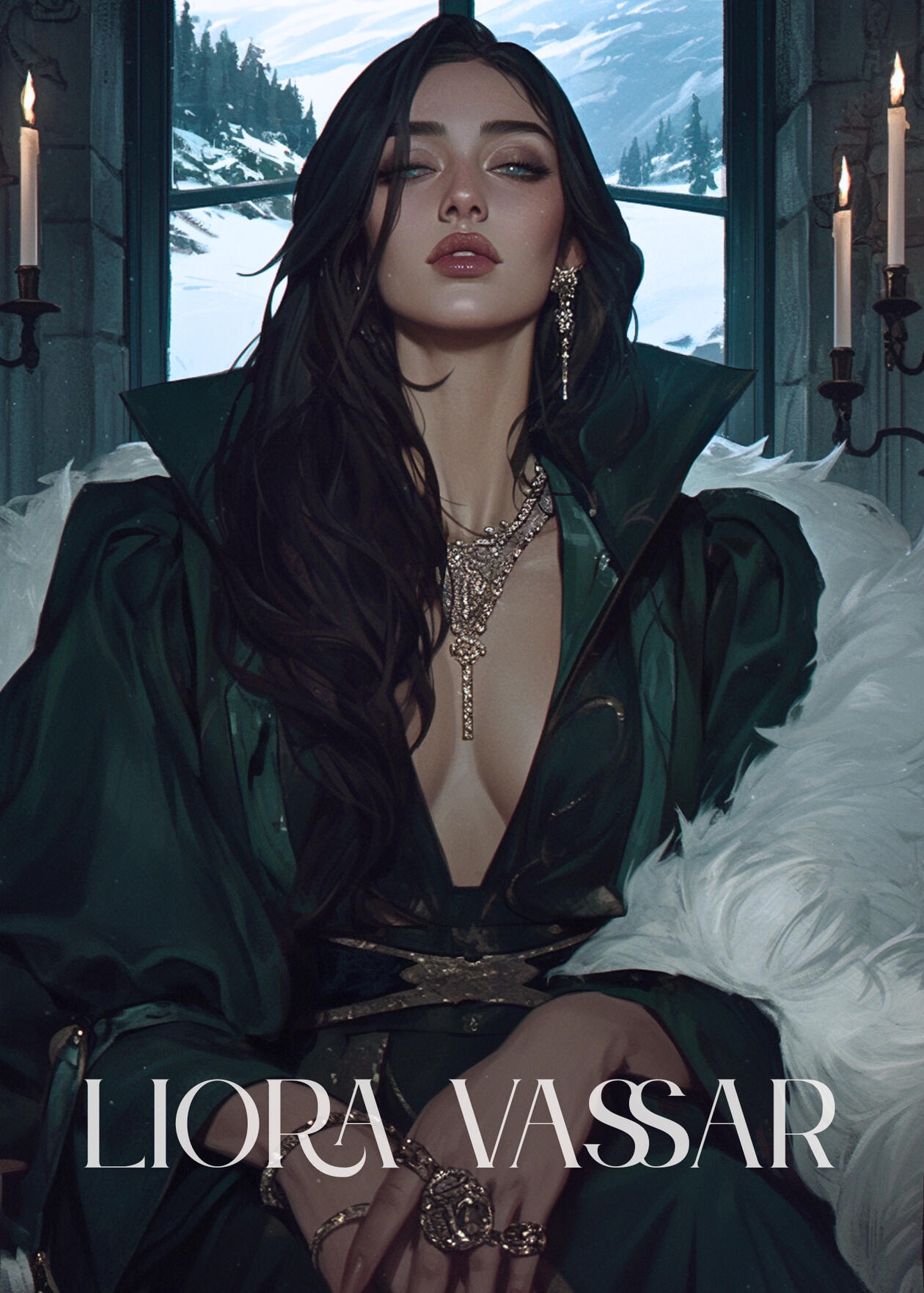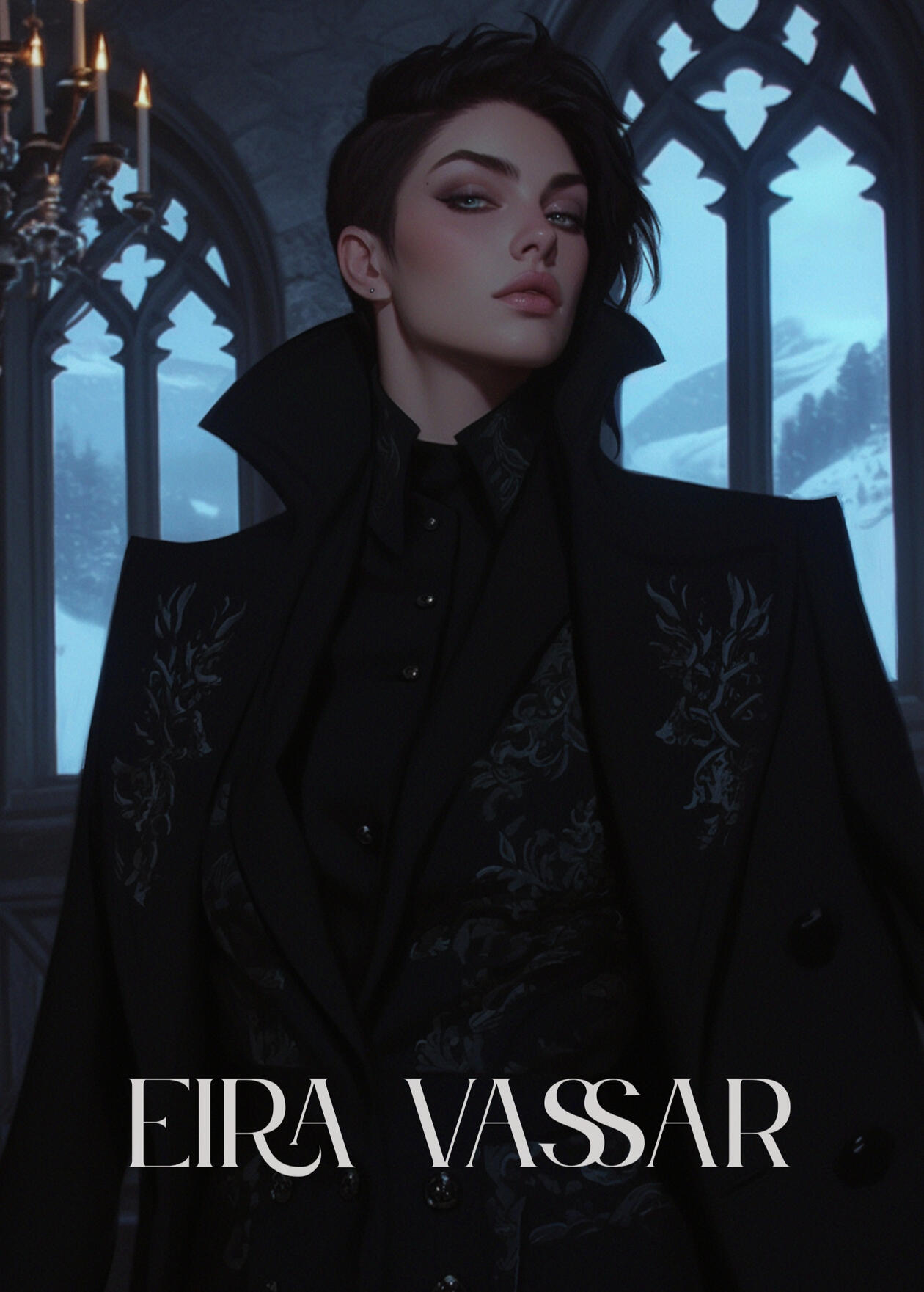 Alpha Regent Eira Vassar & Omega Consort Liora VassarThe North is ruled not by sentiment, but by strength and survival—and no pair embodies that more than Eira and Liora Vassar.Born of the mountain and forged in snow, Eira was raised within the walls of Howl’s Hold, trained from childhood to lead with control, clarity, and unshakable loyalty to her territory. Her word is law, her presence enough to still a room.Liora, a rare-born omega from the West, was not gifted to the North—she chose it. A quiet force shaped by West's ruthless training grounds, she commands devotion with a glance and silence with a touch. Together, they are the unshakable spine of the North: unyielding, bonded, and absolute.